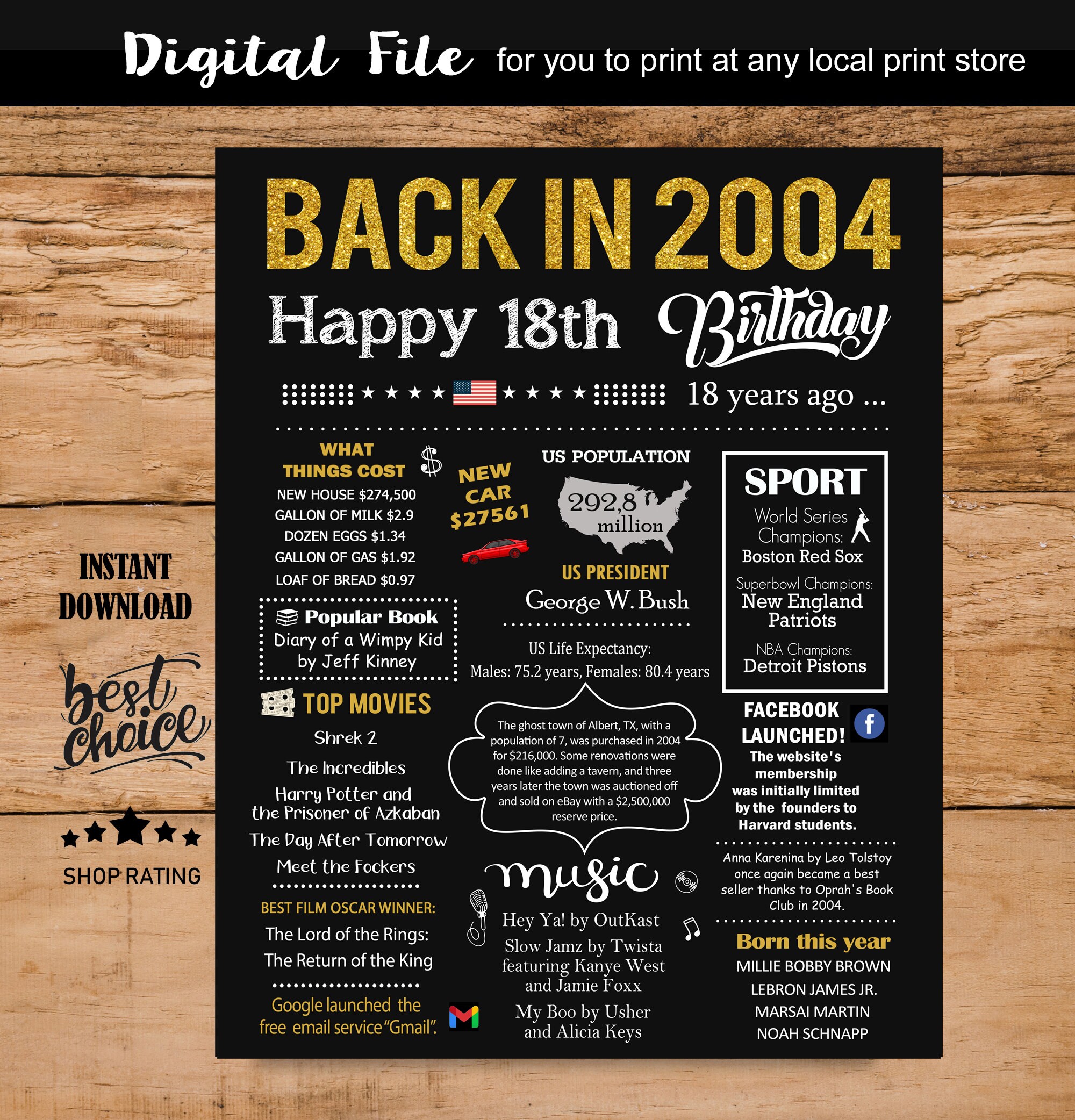 Back In 2004 Sign 18th Birthday Sign For Men Women Wife Etsy Uk